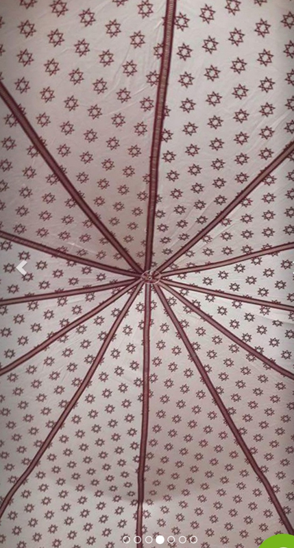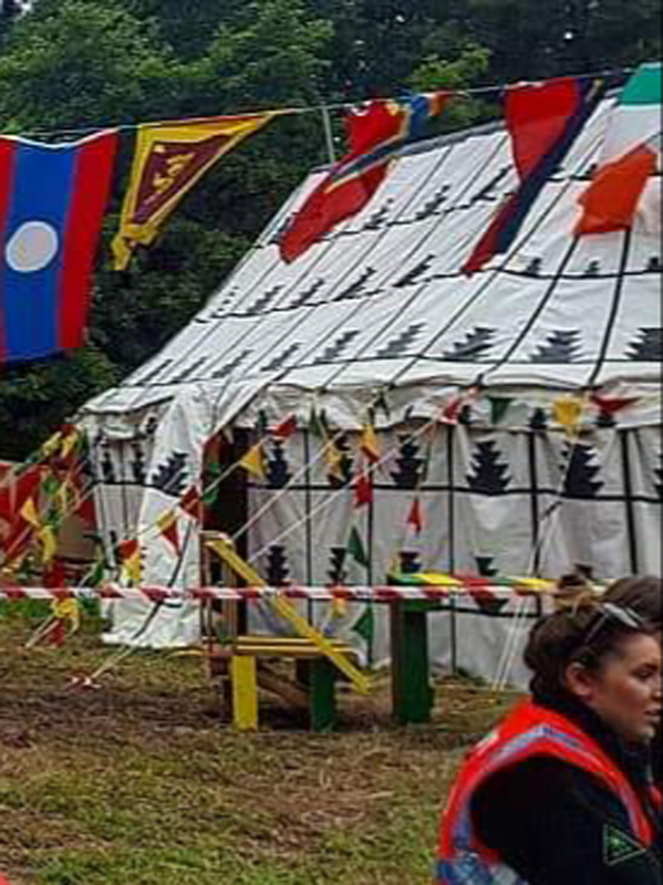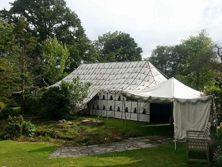 It has a beautiful custom designed rich pale blue and green silk woven fabric lining creating a beautiful luxury tent interior.